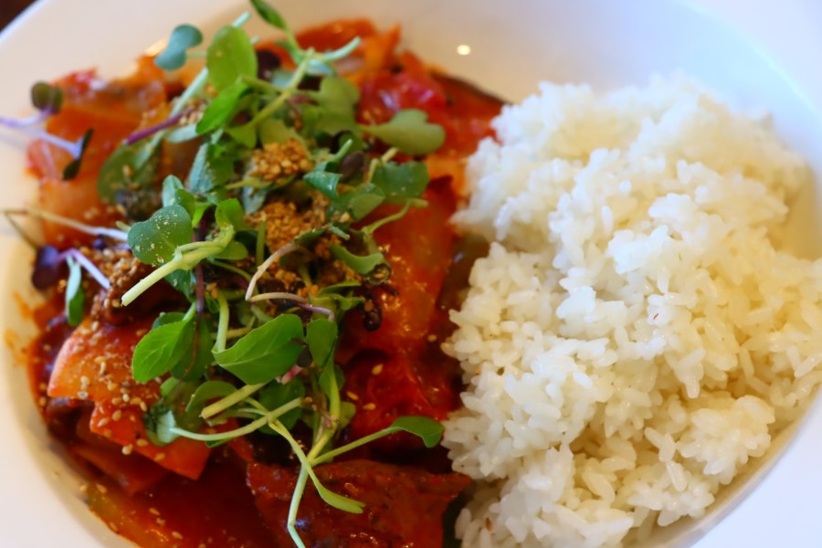 저는 콩불고기 덮밥과 토마토파스타 그리고 비건만두를 주문했습니다.
