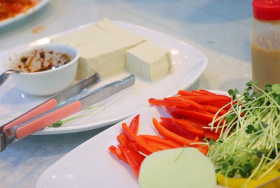 그릇에 담을 음식들이 참 많아요. 좀 느긋하게 앉아서 천천히 먹어야 모두 맛을 볼 수 있어요.^^