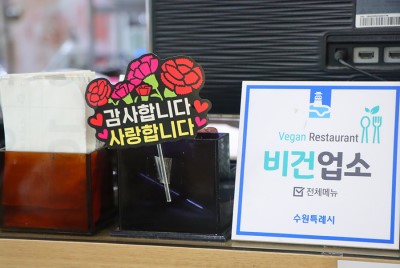 얘기를 잠깐 나누다 보니 채식당을 시작한 사장님의 사연이 길고 깊으신 것 같았습니다. 비건인이 아니심에도 채식당 운영에 자부심을 느끼신다니 이런 마음으로 운영하시기에 20년 넘게 많은 사람들이 찾고 또 찾는 것일 테지요.