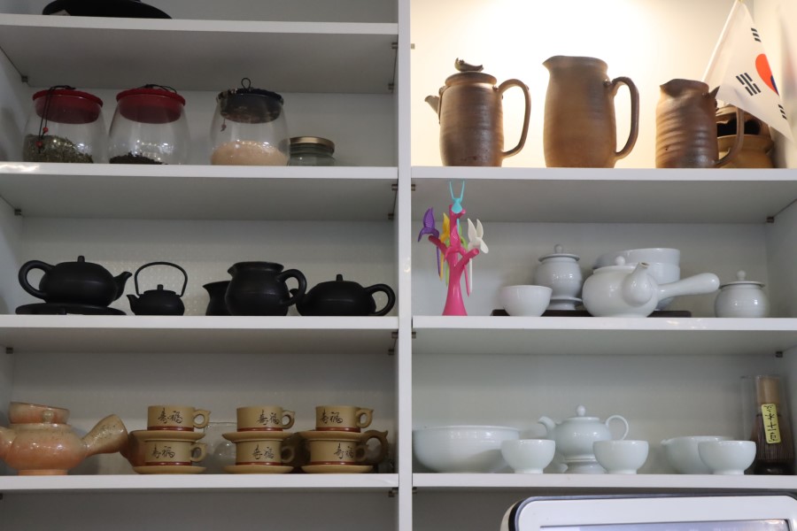 식당 입구 좌우로는 예쁜 다기들이 놓여있었어요. 요즘은 예쁜 다기들이 눈에 자주 들어와요. 예쁩니다.